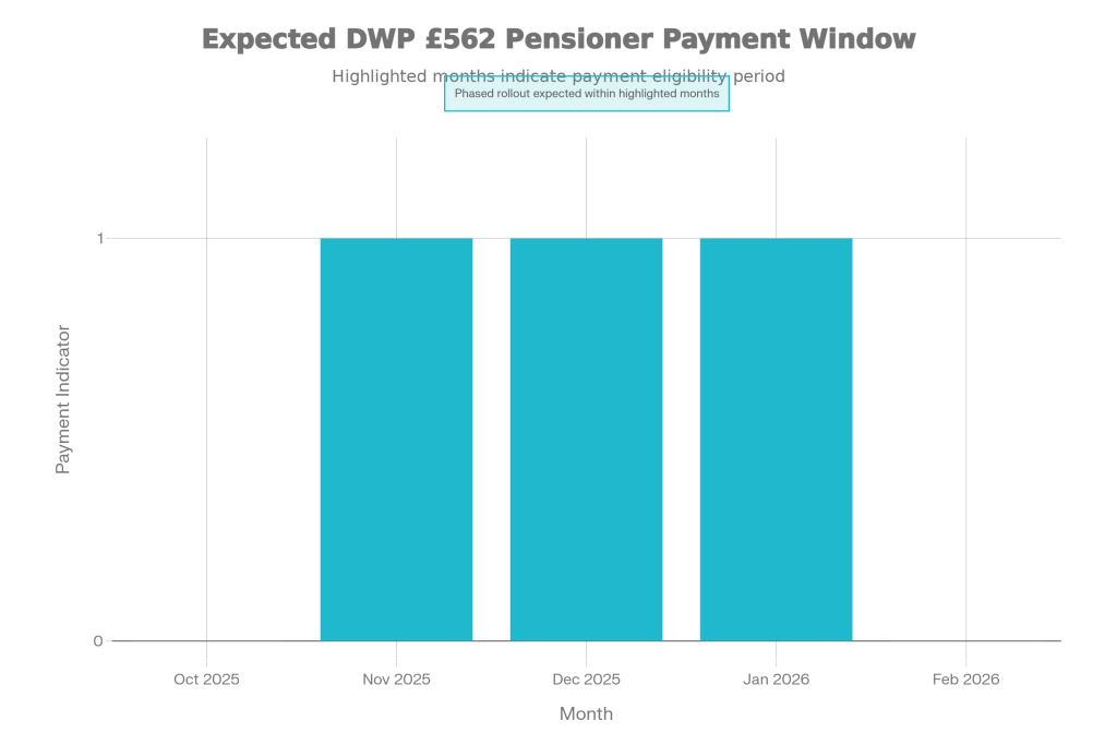 - Timing is the second biggest question after eligibility. The DWP £562 pensioner payment is expected to be sent out in phases, with a window that runs from November 2025 to January 2026.
